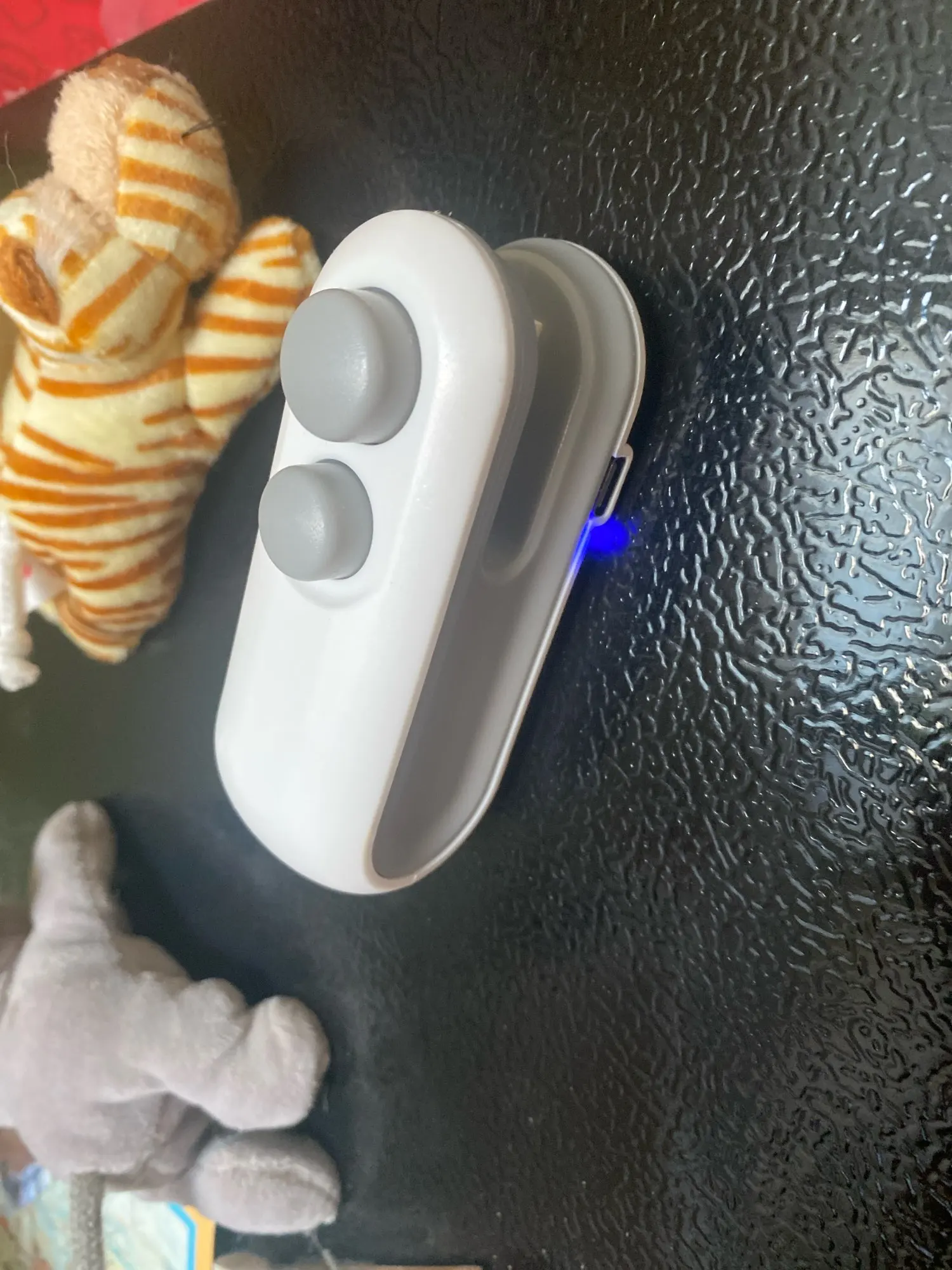 Love this little thing. It sticks right onto the fridge and i use it to close rice bags, frozen food bags, chips etc. It has a little blade inside to open things. I really use this thing a lot and it holds a charge for a while.