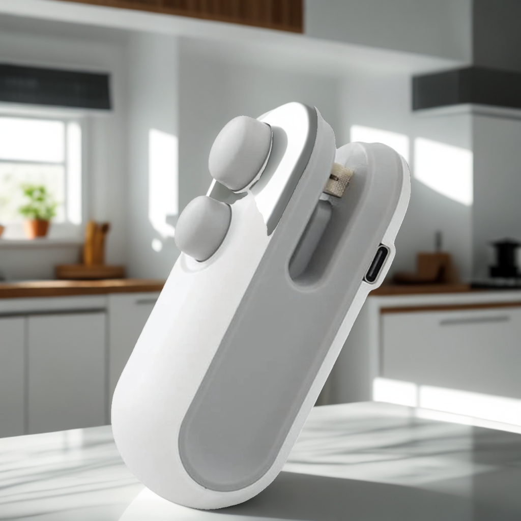 Keep your food fresh and your kitchen organized with this handheld 2-in-1 heat sealer and cutter. Compact, practical, and rechargeable, it allows you to seal and cut plastic bags in seconds, whether at home or on the go.